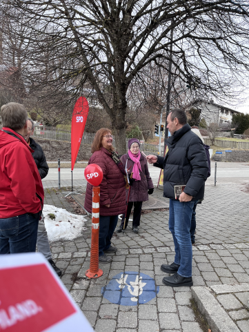 Bei gutem Wetter und bester Laune trafen wir uns zum ersten Info-Stand zur Bundestagswahl vor der Metzgerei in Weyarn. Das Info-Material kam gut an und viele blieben zu Gesprächen am Stand stehen. Am 8. Februar gehts weiter, dieses Mal an der Staatsstrasse.