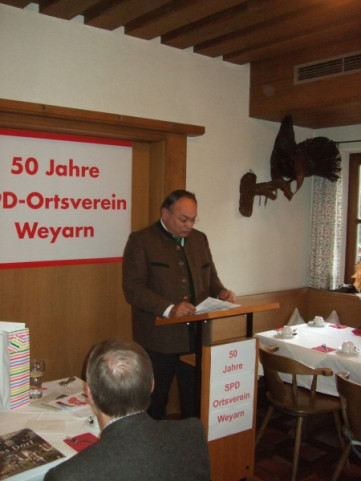 Zum 50-jährigen Gründungsjubiläum lud der SPD-Ortsverein am Samstag, 26.11.2011 um 15.00 Uhr in den Gasthof Alter Wirt in Weyarn ein. In Bildern und Geschichten wurden die letzten 50 Jahre lebendig.