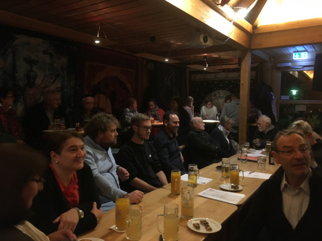 Die interessante und bunte Liste umfasst sowohl erfahrene Mandatsträgerinnen und Mandatsträger als auch neue, junge Mitglieder und Parteifreie, die mit viel Elan und einer Menge guter Ideen und Vorschlägen in der Vorstellungsrunde aufgewartet haben. Nach dem "offiziellen" Teil, bei dem mit einem einstimmigen "Ja" die Liste bestätigt wurde, saß man noch lange beim Bier und Wasser und diskutierte die nächsten Schritte.