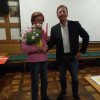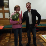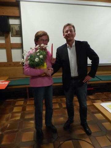 Im Anschluss wird Maria Saugspier für 40 Jahre Mitgliedschaft geehrt. Sie erhält eine Urkunde, eine Ehrennadel und Blumen. Maria Heinzinger erhält in Abwesenheit Blumen zum 80. Geburtstag.