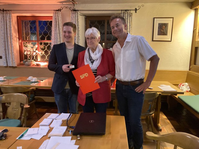Nach längerer, coronabedingter Pause trafen sich die Mitglieder und Freunde des Weyarner SPD Ortsvereins am 24.6.22 im Gasthaus Alter Wirt in Weyarn zur Jahreshauptversammlung. Die Wahlen des Vorstandes sowie der Delegierten und Ersatzdelegierten zur Stimmkreiskonferenz und zur Unterbezirkskonferenz standen auf dem Programm. Auch Ehrungen konnten nun wieder persönlich vorgenommen werden. So sind Karl und Susanne Limmer für 25 Jahre Mitgliedschaft geehrt worden, Maria Heinzinger und Erhard Sprick für 50 Jahre Mitgliedschaft. Ursula Weber, die auch für 50 Jahre Mitgliedschaft geehrt worden wäre, konnte leider nicht dabei sein. Zu Beginn der Veranstaltung gedachte die Versammlung unseres verstorbenen langjährigen Mitglieds Ludwig Heinzinger, der ebenso wie seine Ehefrau 50 Jahre Mitglied der SPD gewesen ist.
