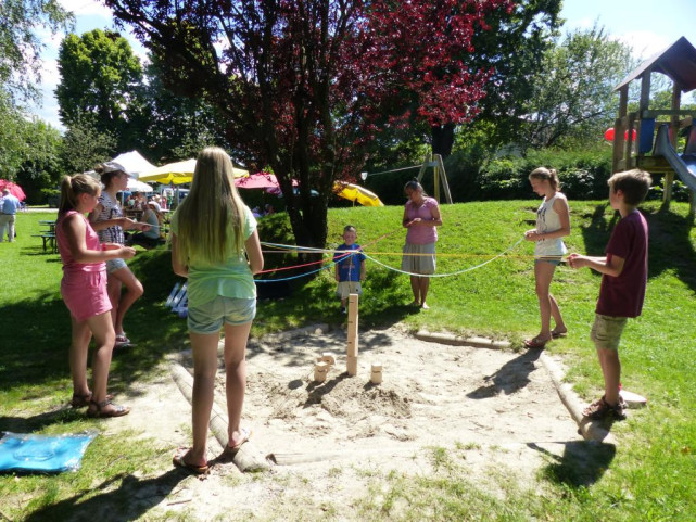 Dieses Jahr meinte es das Wetter wirklich gut mit den Veranstaltern und vor allem den vielen Kindern und Erwachsenen, die zum Kinderfest gekommen sind. Bei strahlendem Sonnenschein - fast ein wenig zu strahlend - wurde mit „Tower of Power“, dem Kegelspiel, Malen und Butttonmschine, einem Angelspiel und vielem anderen mehr der Nachmittag zu einem Erlebnis. Bei Kaffee und Kuchen, aber auch salzigen Leckerbissen, ließen es sich die Erwachsenen gut gehen. Auch Hannes Gräbner, der Kreisvorsitzende und Bewerber um die Kandidatur für den Bundestagsabgeordneten des Wahlkreises schaute vorbei. Neben den Spielen für die Kinder, die an diesem Nachmittag weder für Getränke noch für Essen etwas bezahlen müssen und natürlich auch nicht für die Spiele, sind es die guten Gespräche und das gegenseitige Kennenlernen auch der neuen Gemeindebürger, die den Nachmittag zu einem festen Programmpunkt der Weyarner SPD machen. In diesem Jahr übrigens zum 41. Mal.