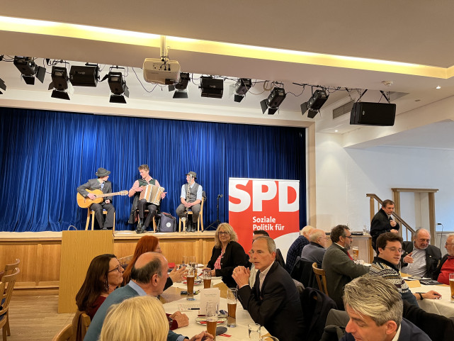 Nach zwei Jahren Pause trafen sich am Samstag über 100 Mitglieder und Freunde des Unterbezirks Miesbach zum Jahresempfang der SPD im Neureuthersaal in Gmund. Bürgermeister Robert Kühn freute sich über die große Anzahl der Gäste die gespannt den Ausführungen von Ronja Endres, der Landesvorsitzenden und Landtagsdirektkandidat Bruno Peetroons lauschten. Auch Landtagskandidat Heinz Oesterle aus Feldkirchen-Westerham und SPD Bürgermeister Michael Falkenhahn waren im Saal. Deutlich wies Ronja Enders darauf hin, welche Errungenschaften in der erst kurzen Regierungszeit von Olaf Scholz gemacht wurden. Mindestlohn, Wohngeld, Kindergrundsicherung, das neue Aufenthaltsrecht und vieles mehr. Beim Thema Wohnungsbau sparte sie nicht mit Kritik an BayernHeim und den nicht erreichten Zielen von Ministerpräsident Söder. Dem nach ihren Worten "schlechtesten Wohnungsbroker".