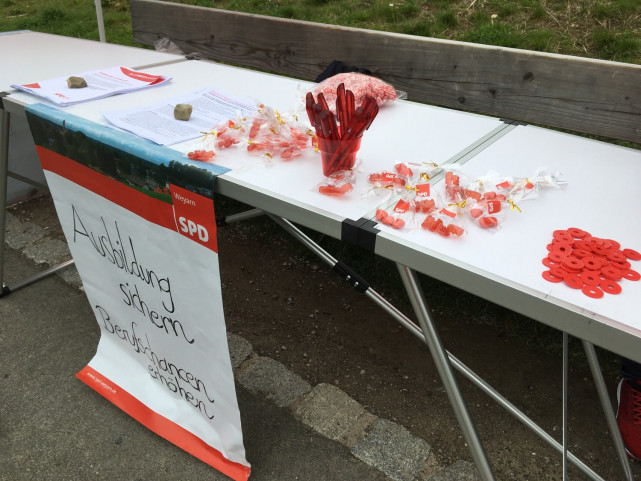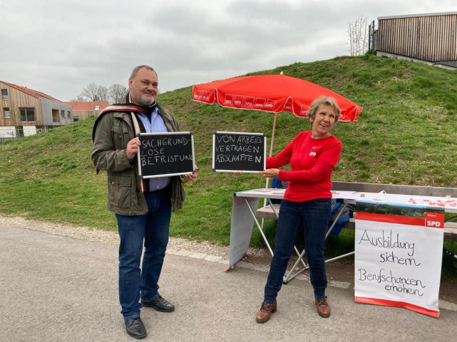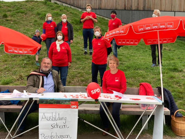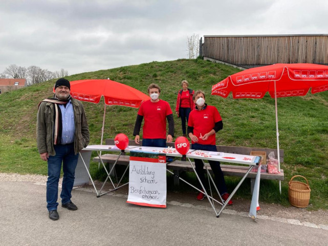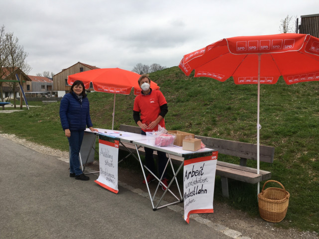 Mit einem Info-Stand zum 1. Mai hat die Weyarner SPD den Wahlkampf eingeläutet. Auch wenn das Wetter kaum zum langen Stehenbleiben eingeladen hat, gab es viele gute Gespräche. Die Arbeit wertschätzen, Tarifverträge für allgemein verbindlich erklären, den Mindestlohn auf 12 Euro erhöhen und die Befristung von Arbeitsverhältnissen ohne einen Sachgrund abschaffen sind nur einige der Themen, die das Wahlprogramm der SPD für die Bundestagswahl umfassen. Auch der Bundestagskandidat Hannes Gräbner hat vorbei geschaut und blieb gerne bis zum Ende am Stand.