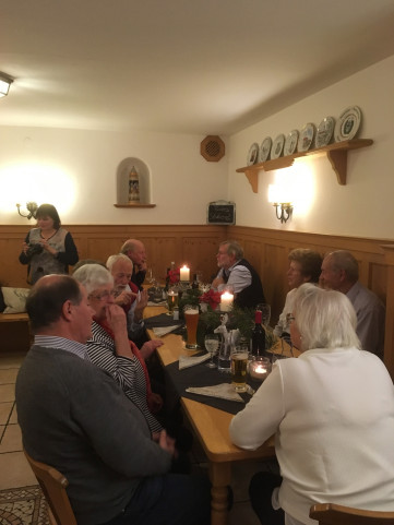 Weihnachtsfeier des Ortsvereins Freitag, den 7. Dezember 2018 Zur Weihnachtsfeier im Landgasthof Neukirchen lud der Vorsitzende der SPD Weyarn alle Mitglieder und Freunde herzlich ein. Neben guten Gesprächen und feinem Essen gab es einen Film von Maxl Fischer über das Kloster Weyarn zu sehen. Weitere Bilder