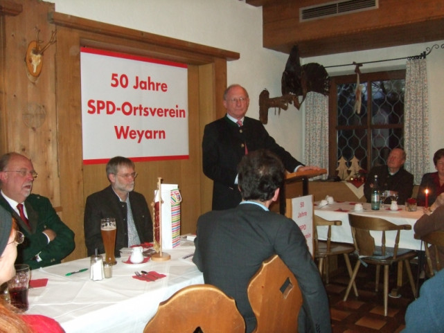 Zum 50-jährigen Gründungsjubiläum lud der SPD-Ortsverein am Samstag, 26.11.2011 um 15.00 Uhr in den Gasthof Alter Wirt in Weyarn ein. In Bildern und Geschichten wurden die letzten 50 Jahre lebendig.