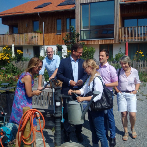 Zu einem Kurzbesuch auf seiner Tour durchs Oberland kam SPD-Staatssekretär Florian Pronold gemeinsam mit Landtagskandidatin Verena Schmidt-Völlmecke und Bezirkstagskandidat Tim Roll in Weyarn vorbei. Auch Zweitstimmenkandidat Robert Kühn aus Bad Wiessee war dabei. Nach der Begrüßung im Rathaus führte SPD-Fraktionssprecherin und Seniorenbeauftragte Betty Mehrer die Gruppe durch den Klosteranger, das Mehrgenerationenwohnen und der reduzierte Flächenverbrauch durch innovatives Bauen waren Thema des Vormittags.