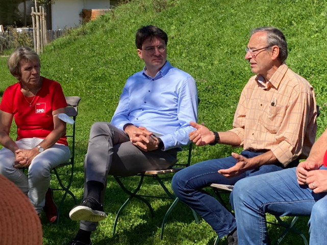 Die Sonne strahlte nur so vom Himmel und lud ein, einen Spaziergang durch das Wohngebiet Klosteranger zu machen. Florian von Brunn, Landesvorsitzender der Bayern SPD ließ sich alles genau erklären und stellte sich anschließend gemeinsam mit dem 2. Bürgermeister der Gemeinde Weyarn, Dr. Franz Demmelmeier (SPD), sowie Fraktionssprecherin Betty Mehrer (SPD) und Mathias Fackler, (SPD) Jugendbeauftragter der Gemeinde Weyarn den Fragen der Gäste. Das Thema Wohnen auf dem Land - bei rapid steigenden Bodenpreisen und damit auch Mietpreisen hatte es in sich. Hier sind eine vorausschauende Politik der Kommunen sowie staatliche Regelwerke gefragt.
