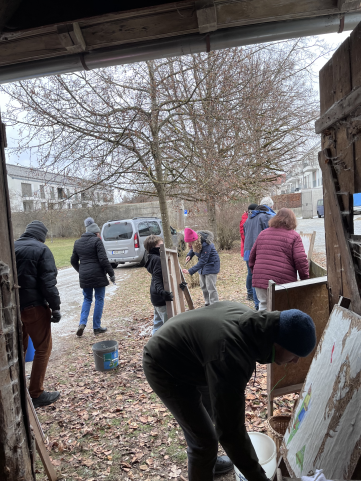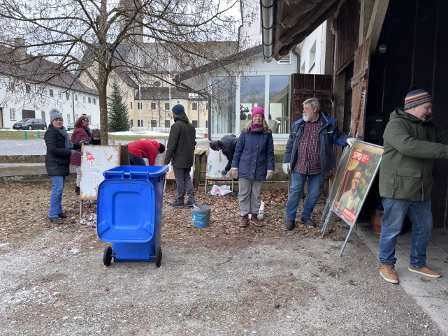 Kalt wars, aber Spass macht es trotzdem. Die bewährte Gruppe der Plakatiererinnen und Plakatierer beim Vorbereiten der Plakataktion zur Bundestagswahl.