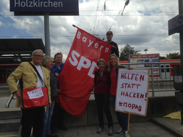 Mehr als 40.000 Menschen nahmen am Protestmarsch gegen das von der Landesregierung geplante Polizeiaufgabengesetz in München Teil. Auch aus dem Ortsvereinen Weyarn, Otterfing und Holzkirchen nahmen Mitglieder und Freunde teil. Besonders aktiv waren die Jusos mit ihren Freuenden. Die Kandidaten für Landtag und Bezirkstag, Verena Schmidt-Völlmecke und Tim Roll waren mit viel Energie dabei und nutzten die Gelegenheit zu vielen Gesprächen. Insgesamt war es schön zu sehen, wie viele junge Menschen sich politisch interessieren und für ihre Themen einsetzen.